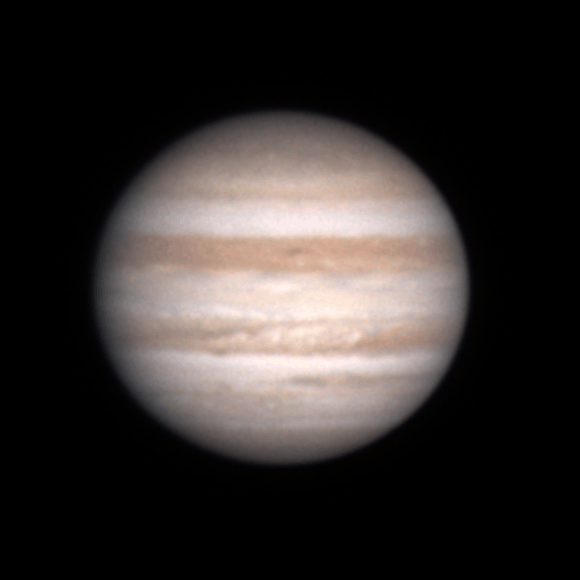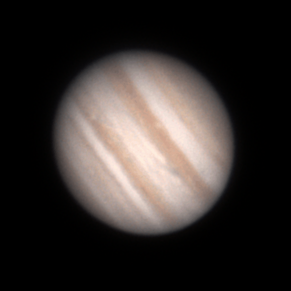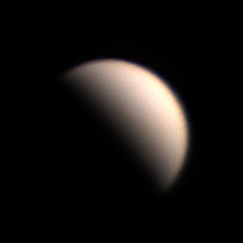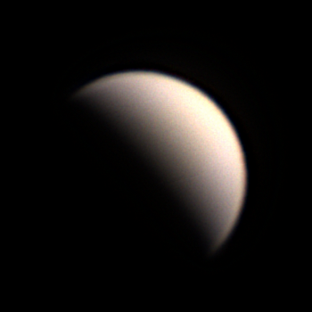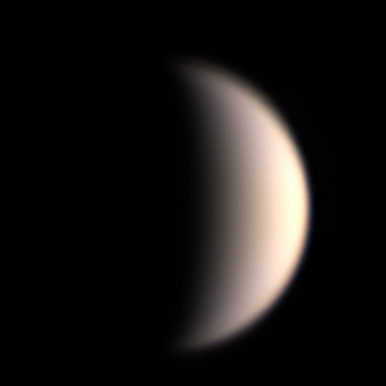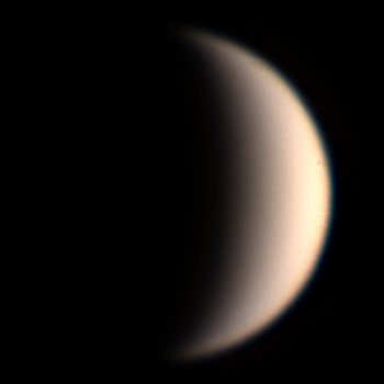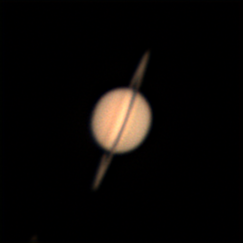 Saturn was too low in the sky to get a very sharp image. Its rings are also nearly edge-on. A ring-plane crossing will occur on March 12 this year (when Saturn is too close to the Sun to observe), but the rings will be nearly edge-on again in November.